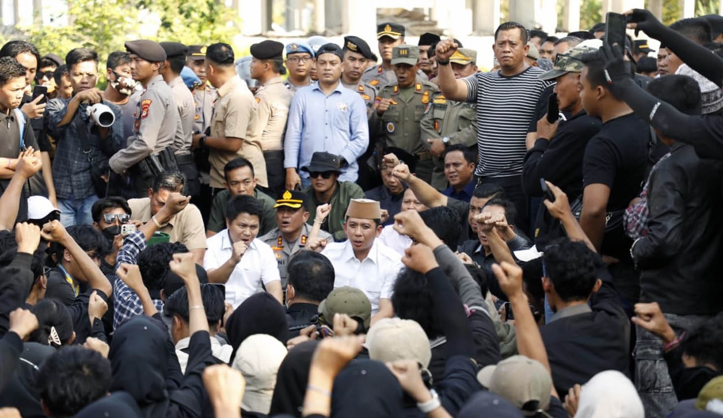 “Saya senang sekali kalian semua hari ini bisa menyampaikan aspirasi dengan cara yang tertib, damai, dan dewasa. Ini adalah ciri-ciri masyarakat yang maju,” ujar Bupati Egi, disambut tepuk tangan peserta aksi.