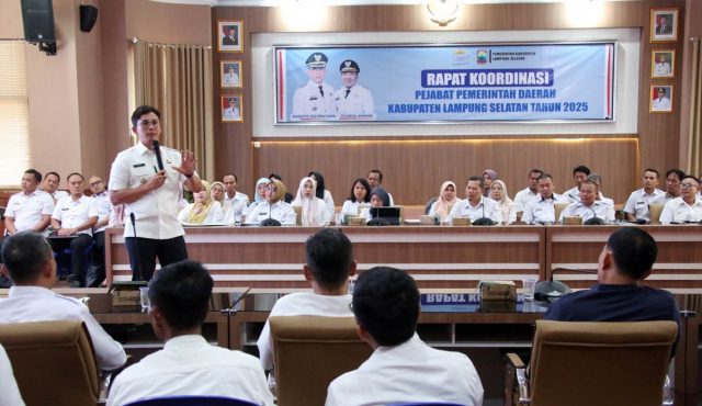 Pemerintah Kabupaten (Pemkab) Lampung Selatan menggelar rapat koordinasi bulanan di Aula Krakatau, kantor bupati setempat, Rabu (10/9/2025). Rapat yang biasanya hanya diikuti pejabat eselon II kali ini digelar dalam dua sesi, dengan melibatkan hingga pejabat eselon IV yang membidangi perencanaan.