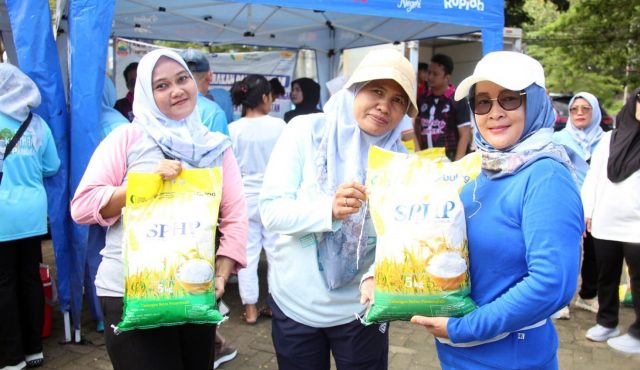 Sejak pagi, masyarakat berbondong-bondong datang untuk mendapatkan kebutuhan pokok dengan harga lebih terjangkau dibanding pasaran.