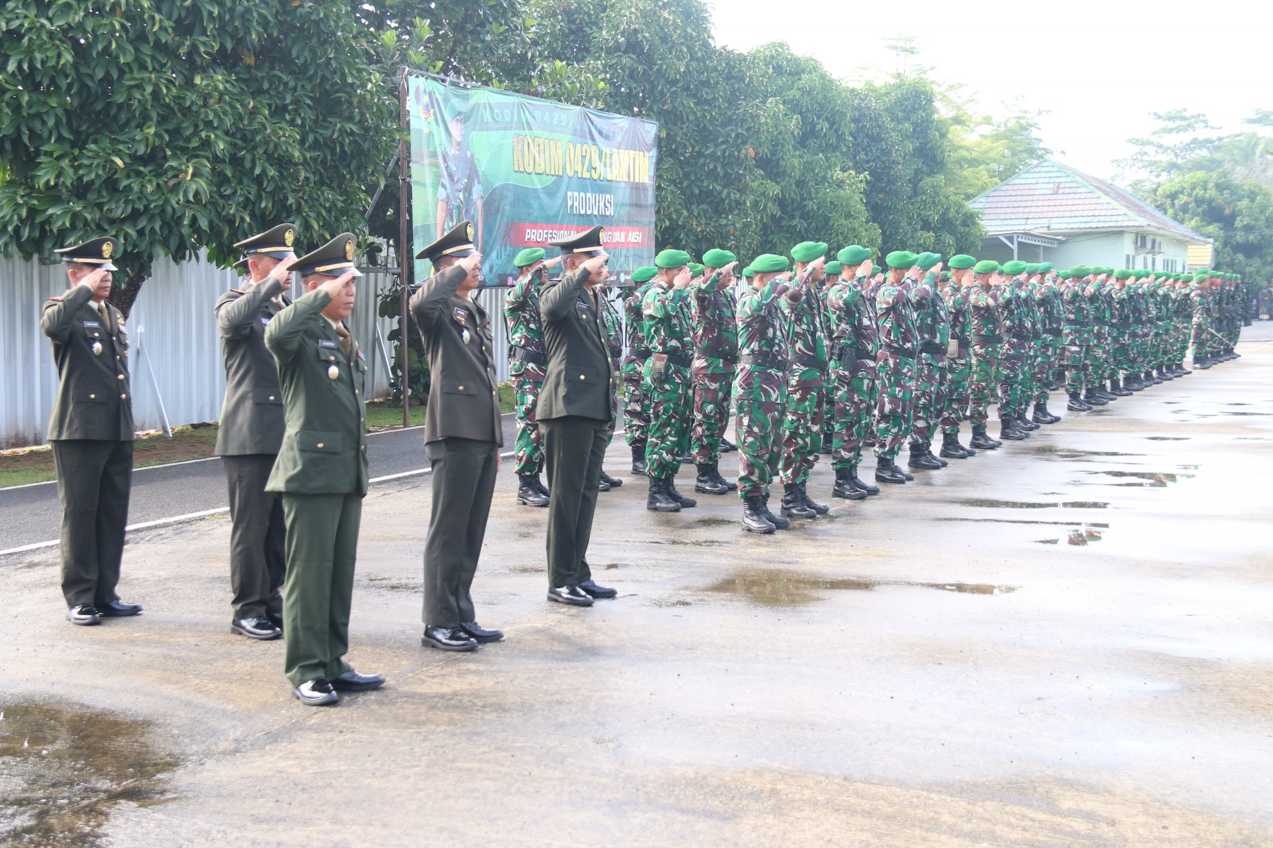Bertindak selaku Inspektur Upacara (Irup) Komandan Kodim (Dandim) 0429/Lamtim Letkol Inf Danang Setiaji, S.I.P, bertempat di lapangan Apel Makodim, Jl. Soekarno-Hatta, Desa Mataram Marga, Kecamatan Sukadana, Kab. Lampung Timur, Minggu (1/10/2025).