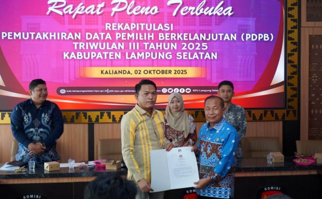 Komisi Pemilihan Umum (KPU) Kabupaten Lampung Selatan resmi menetapkan jumlah daftar pemilih berkelanjutan Triwulan III Tahun 2025 sebanyak 805.283 jiwa.
