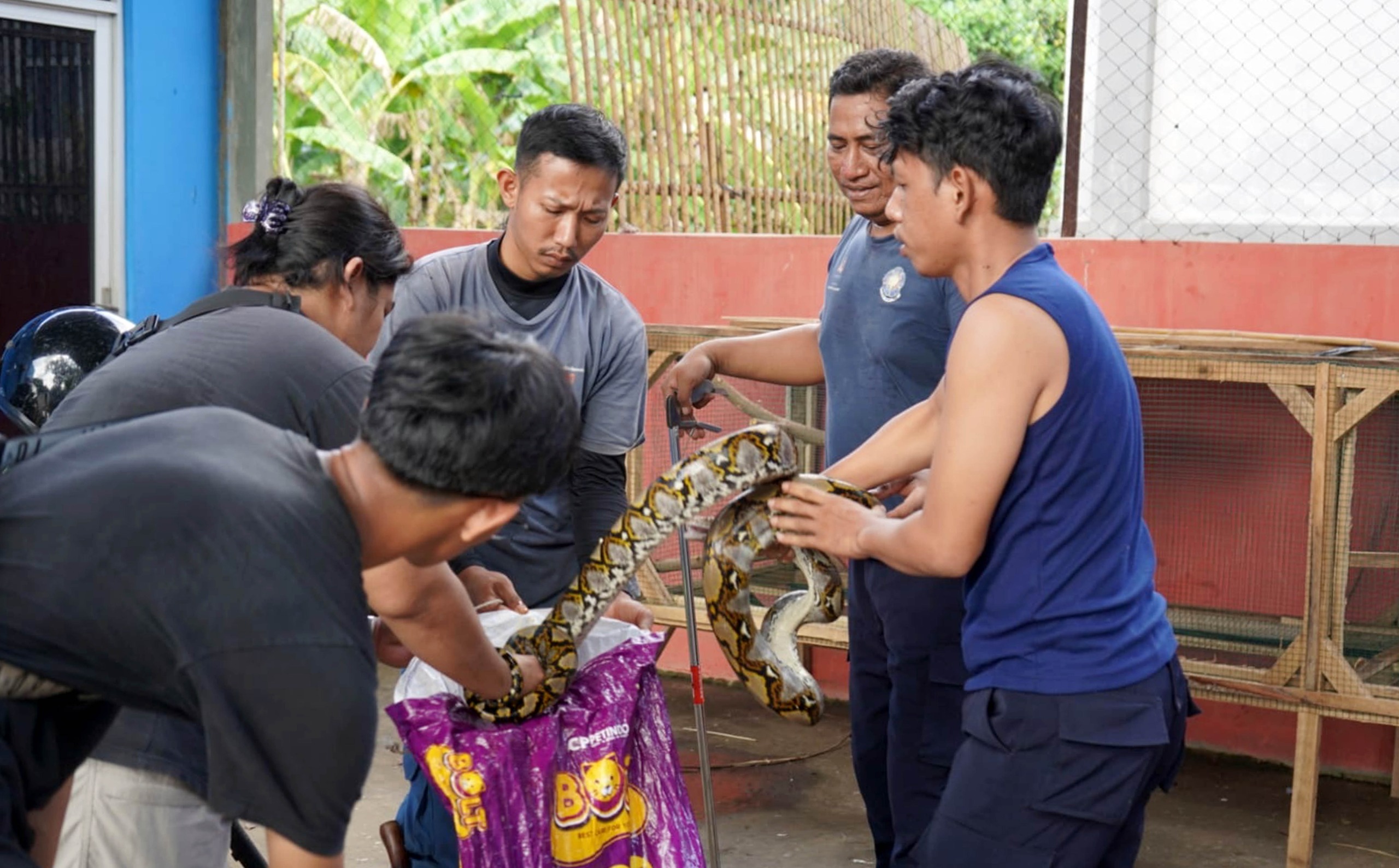 Enam ekor ular sanca yang berhasil diamankan petugas Dinas Pemadam Kebakaran dan Penyelamatan (Damkarmat) Kabupaten Lampung Selatan berdasarkan laporan warga di Kecamatan Kalianda, dilepasliarkan kembali ke habitat aslinya di kawasan Gunung Rajabasa, Selasa (14/10/2025).