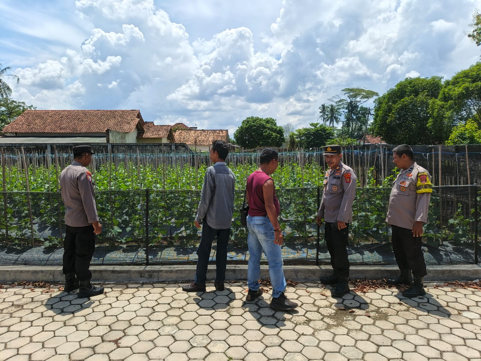 Terlihat Kapolsek sukadana bersama jajaran turun langsung meninjau Kebun melon yang masih terbilang langka di kecamatan Sukadana lampung timur, Kapolsek berharap agar masyarakat khususnya pertani semoga saja semakin banyak yang berminat membudidayakan tanaman buah jenis melon.