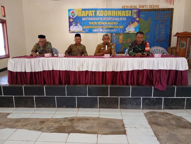 Pada kesempatan rakor, Kades Rukti Sedyo, Saleh mengatakan rakor dilaksanakan bertujuan untuk menjalin sinergi dan kerja sama yang baik antara pemerintah desa dengan instansi terkait.