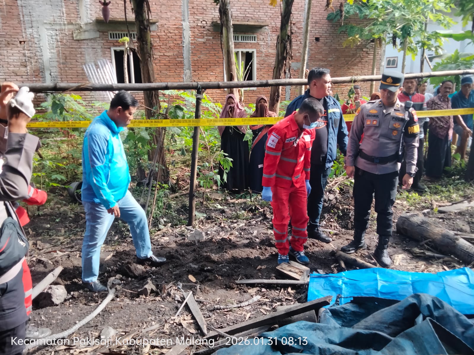 Petugas Polsek Pakisaji bersama Unit Identifikasi Satreskrim Polres Malang segera mendatangi tempat kejadian perkara untuk melakukan olah TKP, mengamankan lokasi, serta meminta keterangan saksi-saksi.