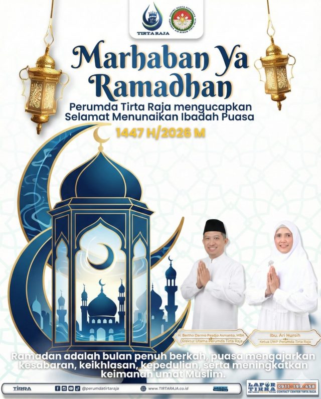 “Kami dari Perumda Tirta Raja mengucapkan selamat menunaikan ibadah puasa kepada seluruh saudara-saudari yang beragama Islam. Semoga ibadah yang dilakukan dapat memberikan keberkahan dan mendekatkan kita kepada Sang Pencipta,” ujarnya.