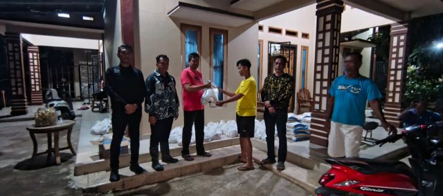 Paket bantuan berisi beras dan berbagai kebutuhan pokok lainnya, yang diharapkan dapat meringankan beban ekonomi warga sementara kondisi lingkungan masih belum normal.