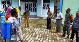 Babinsa Koramil 02/WB Bantu Warga Semprot Disinfektan Fasum
