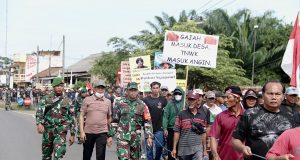 Dandim Bersama Kapolres Kawal Aksi Damai Konflik Gajah Desa Penyangga TNWK