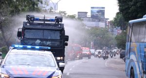 Wakapolda Sumsel bersama Danrem 044/ Gapo Brigjen TNI. Melakukan Penyemprotan disinfektan...