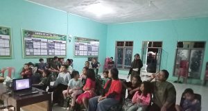 Masyarakat Dan Anak-anak Desa Sumber Marga Nobar Di Posko TMMD 117