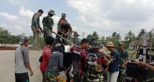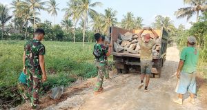 Babinsa Koramil 05/Sukadana Monitoring Pembangunan Jembatan