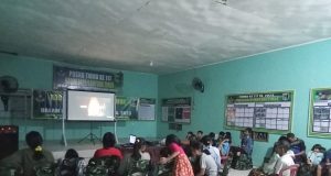 Masyarakat Dan Anak-anak Desa Sumber Marga Nobar Di Posko TMMD 117