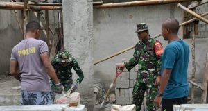 Eratkan Kemanunggalan TNI Rakyat, Babinsa Gotong Royong Bedah RTLH